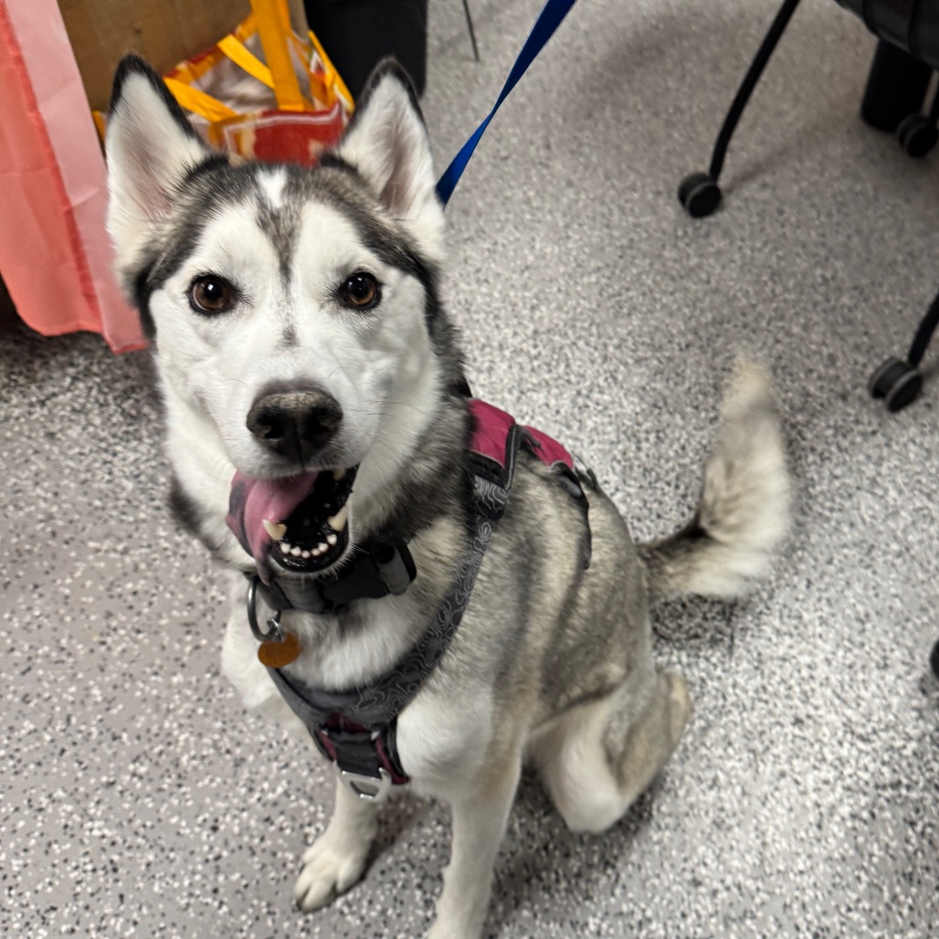 Rey is an ~6yo female Siberian Husky. She was taken in by FureverNV in November 2025. Rey has epilepsy and requires monthly medication, but that doesn't stop this sassy, spunky, beautiful gal from prancing around the yard, playing with other dogs, big and small, and snuggling against you for pets and pats. She is a lovely girl with a sweet disposition. She is looking for her forever home.